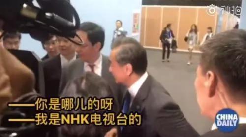 中国日报的视频显示,王毅正在接受媒体群访,然后NHK的记者提问了。
