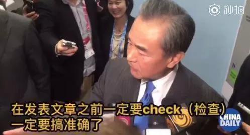 错误指出来了,王毅也不忘提醒一句,发文章之前一定要check(检查)!