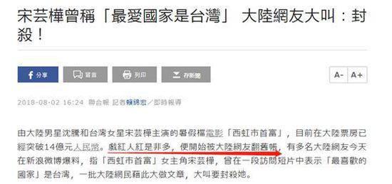 首先,在宋芸桦最初被网友批评,但尚未发表声明回应时,岛内媒体已经报道了她的“经历”,形容她的话令大陆网友气炸。