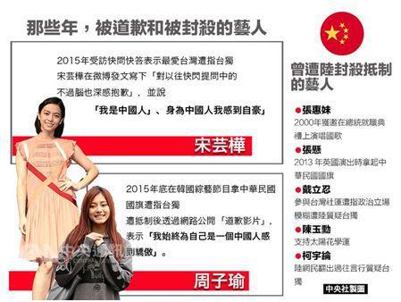 报道除了讲述宋芸桦的声明,还通过配图列举了“那些年被道歉和被封杀的艺人” ,张惠妹、张悬、戴立忍等上榜↓