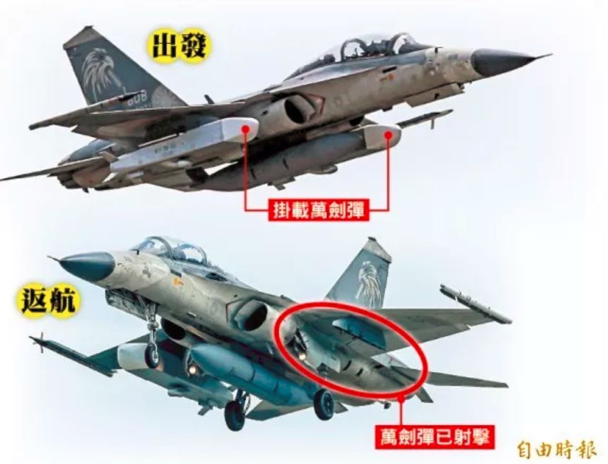 亲绿的台湾《自由时报》5日称,“万剑弹”去年9月底曾在屏东九鹏基地外海进行作战射击验证,已达到原先设计的功能,随后开始少量拨交台湾空军,今年则由空军战术测评队实施更严苛的战术测评。即模拟在实战状况下,由“经国”号战机从挂载、升空、战术动作、发射到是否击毁目标,验证实战能力。8月2日下午,两架“经国”号双座战机从志航基地起飞,其中一架发射一枚“万剑弹”实弹,另一架全程追踪、录像,并出动一架无人机进行战场监控,将整个实况实时传回“中科院”九鹏基地。由于事涉敏感,测试时段全程保密。