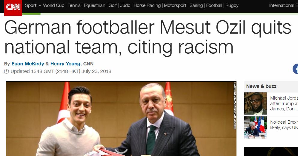 这位网友的话也令耿直哥想起了前不久我们《环球时报》才刚报道过的发生在德国的一件事:德国著名的土耳其裔球星厄齐尔因为在英国踢球时与土耳其总统合影,遭到了德国足协和德国政客乃至媒体的抨击与打压,理由认为他对自己的国家不忠诚。可厄齐尔在球场上却从来都是对德国队尽职尽责,他也表示与土耳其总统合影只是因为他不是一个会忘记自己根的人。