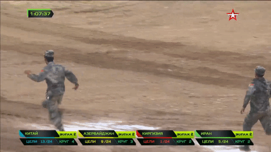 在本场比赛之中,吉尔吉斯斯坦队的表现相当“奇葩”,本来在小组赛该队表现不错,然而在首场半决赛中却接连出糗,第一车组的8个目标只打中一个并列机枪靶,第二车组的倒车行为可能是因为在主炮射击环节未能发现靶标,试图倒回射击区重打,最终该队被判未能完赛。