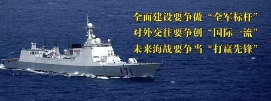 走向深蓝的航程充满了艰辛和坎坷。作为大国重器,航母一直倍受瞩目。海口舰是航母编队的首批“带刀侍卫”,2016年12月,编队出岛链训练,数十批外军舰机对我跟踪监视、轮番挑衅,一会电磁干扰,一会抵近侦察。海口舰等数艘战舰奉命前出,与其当面交锋。编队航行一路、斗争一路,在挑战中越走越远、越战越强!我们欣喜地看到,经过6年磨砺,中国航母编队体系作战能力已经初步形成,人民海军驰骋深蓝更有信心、更有底气、更有力量!