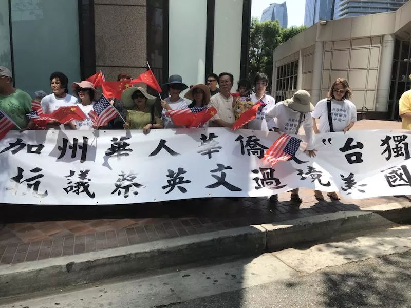 此前,据台湾省媒体报道,蔡英文即将“过境”洛杉矶,大陆驻当地领事馆动员中国和平统一促进会等团体,规划届时前往蔡英文下榻饭店外抗议,而国民党美西南支部等组织,也将配合进行突袭式抗议滋扰,形成“红蓝合作”的奇特景观。据报道,活动发起单位还将租用小飞机,在洛杉矶上空拉起“只有一个中国,台湾是中国的一部分,Only One China。 Taiwan is part of China”的中英文横幅,抗议蔡英文“背离中华民国、不认同‘九二共识’”的罪状。