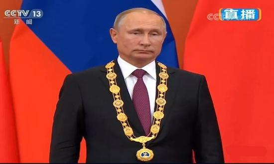 喜提中国首枚“友谊勋章”的普京 央视新闻视频截图