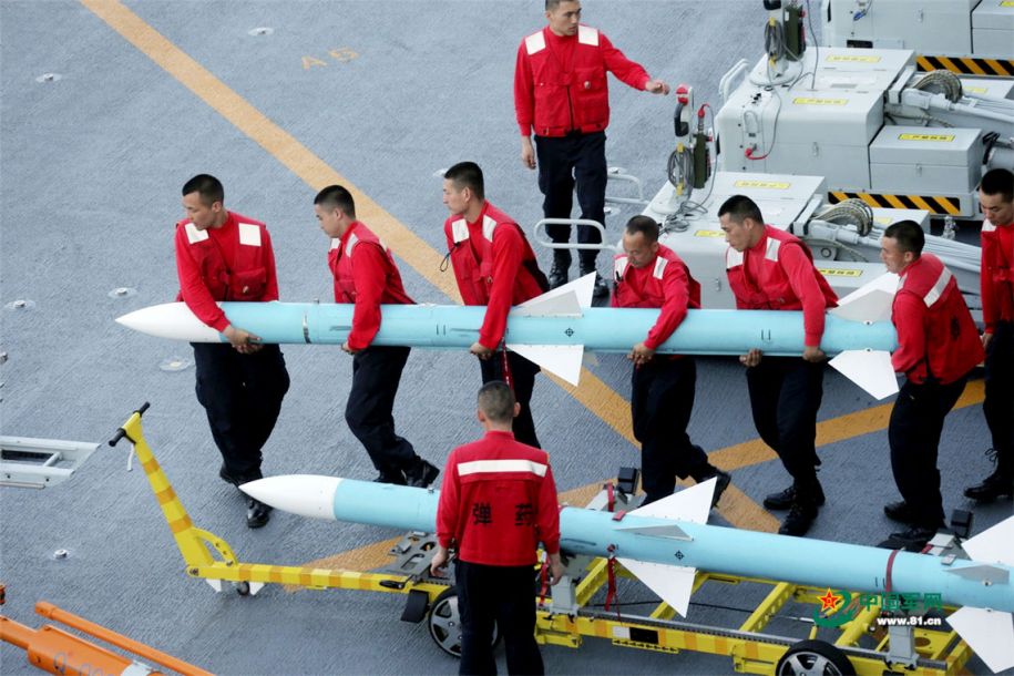 [延伸阅读]一枚导弹需6人抬!辽宁舰歼15海上训练