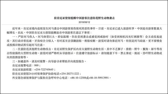 事故发生后,中国驻肯尼亚使馆通过官网发出安全提示