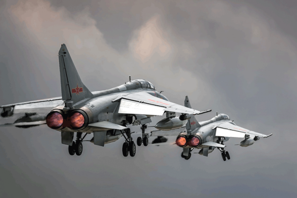 中国空军歼轰—7A歼击轰炸机进行飞行训练