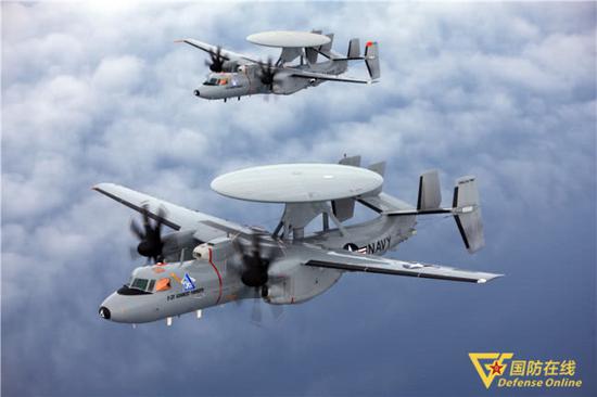 2009年,两架E-2D型“先进鹰眼”预警机在佛罗里达州圣奥古斯丁附近进行试飞。 诺斯罗普·格鲁曼公司 图片