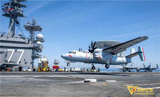 2018年5月11日,法国海军的一架E-2C型“鹰眼”预警机在美国海军“乔治·H.W。 布什”号航母的飞行甲板上降落。法国海军是美制E-2C型预警机在欧洲地区的第一个用户。 美国海军图片