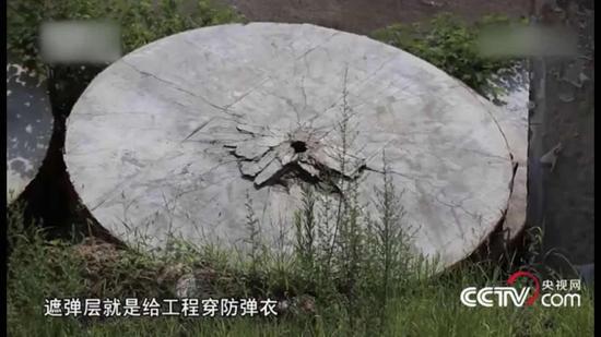 吴飚(军事科学院国防工程研究院研究员):弹打上去,打了个白点,弹给弹走了,如果普通混凝土来说,普通混凝土就像切豆腐一样,弹“噗”就钻进去了,打它就像打个钢板一样,“砰”打了,弹不但没进去,弹给弹到一边去了,当时觉得很高兴、很兴奋。