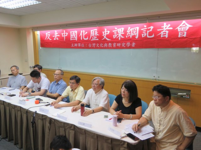 学者在“反去中国化历史课纲记者会”讨论课纲问题(图片来源:中评社)