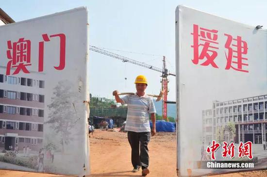 2011年5月6日,由澳门政府援建的四川省南充市高坪区第五小学新校区正在施工。(中新社发 李向雨摄)