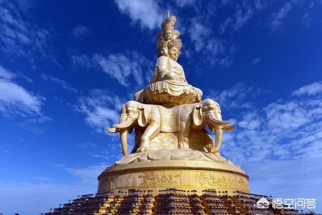 二、峨眉山,位于乐山市峨眉山市,四大佛教名山之一,普贤菩萨道场,和乐山大佛共同组成世界自然与文化双重遗产,最高点万佛顶(现在已经不开放了)海拔3099米,金顶有高达48米的十方普贤菩萨雕像。