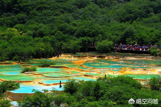 五、黄龙景区,位于阿坝州松潘县,世界自然遗产,主要景观是梯田状的钙华彩池奇观。