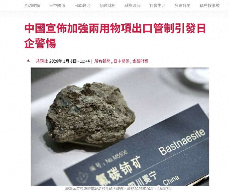 随着中方加强“两用物项”出口管制的消息传开,不安情绪开始在日本企业界蔓延。日本共同社1月8日报道称,日本军工产业相关人士坦言,如果中方的措施涉及供应链,那么电池和磁铁等物资的采购可能面临障碍。考虑到日本可能无法继续从中国进口对汽车零部件不可或缺的稀土,日本汽车行业也十分警惕,称将与日本政府合作确保关键原材料供应。日本雅虎新闻网警告说,若中方的管制措施升级为稀土禁运,“日本的产业将陷入停滞”。