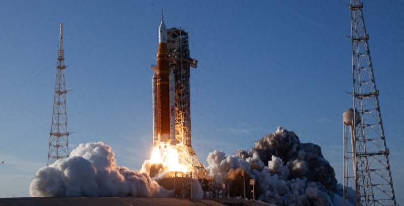 当地时间4月1日,美国航空航天局新一代登月火箭“太空发射系统”搭载“猎户座”飞船发射升空,执行“阿耳忒弥斯2号”载人绕月飞行任务。 IC Photo