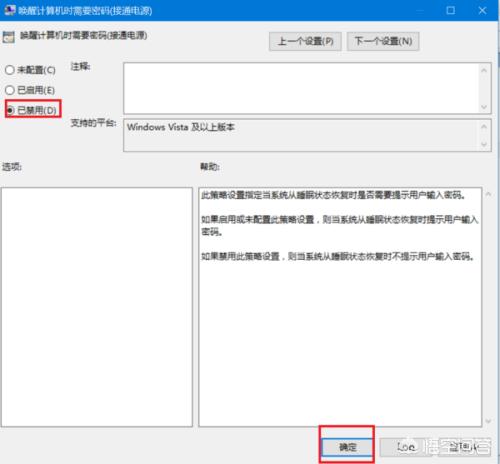 计算机配置——管理模板——系统——电源管理——睡眠设置——唤醒计算机时需要密码——双击后选择“已禁用”——确定。