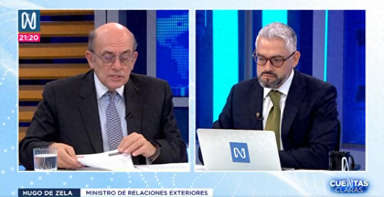 秘鲁外交部长(左)接受Canal N采访 视频截图