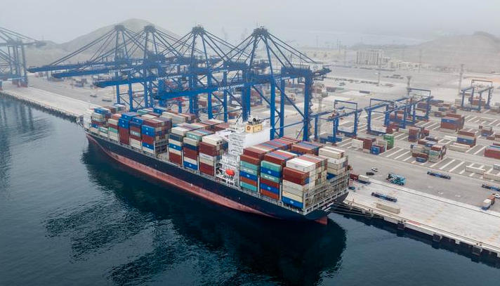 2025年5月16日,一艘集装箱船停靠在秘鲁昌凯港 新华网
