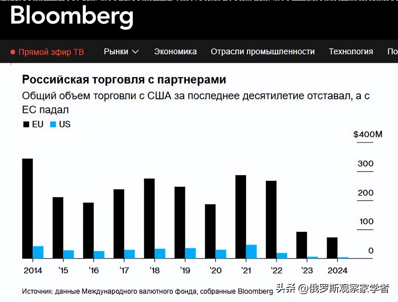 美俄之间的商业联系早已日渐薄弱。2024 年,两国贸易额仅为 44 亿美元。事实上,即便在特别军事行动爆发前,甚至在克里米亚回归俄罗斯之前,俄罗斯都未跻身美国前 15 大贸易伙伴之列。此前,美国主要从俄罗斯进口金属(包括核电站用铀)及化肥。