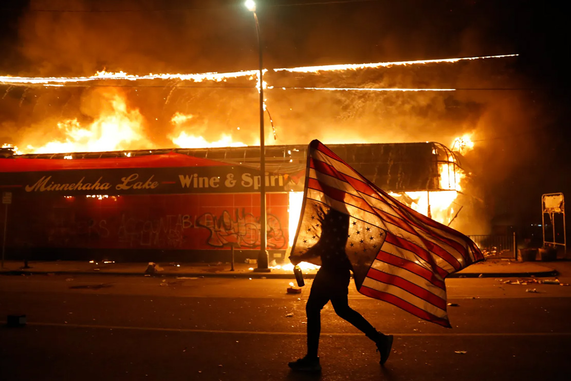 2020年5月美国非洲裔男子乔治·弗洛伊德被白人警察“跪杀”后,美国街头的抗议者。 美《外交政策》