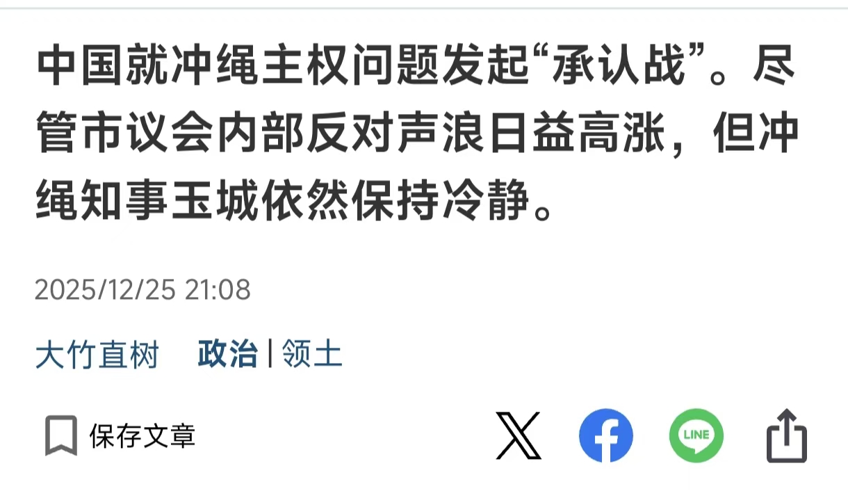 但是对于这件事,日本政府和高市早苗内阁的反应倒让人感到有些意外。冲绳县知事玉城丹尼在12月25日接受媒体采访时对此表示,“我理解中国的言论只是众多观点之一,我没有什么特别要说的。”