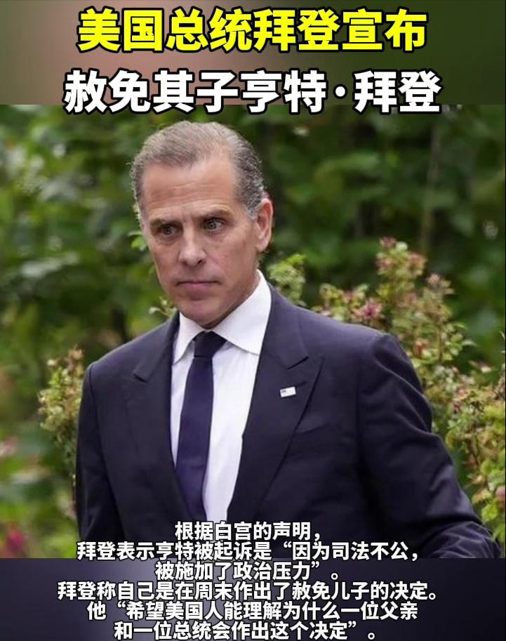 到了2024年12月,就在拜登即将卸任、权力交接前的最后关头,这位总统父亲做出了一个极具争议的决定。他签署了一份赦免令,宣布赦免亨特·拜登。