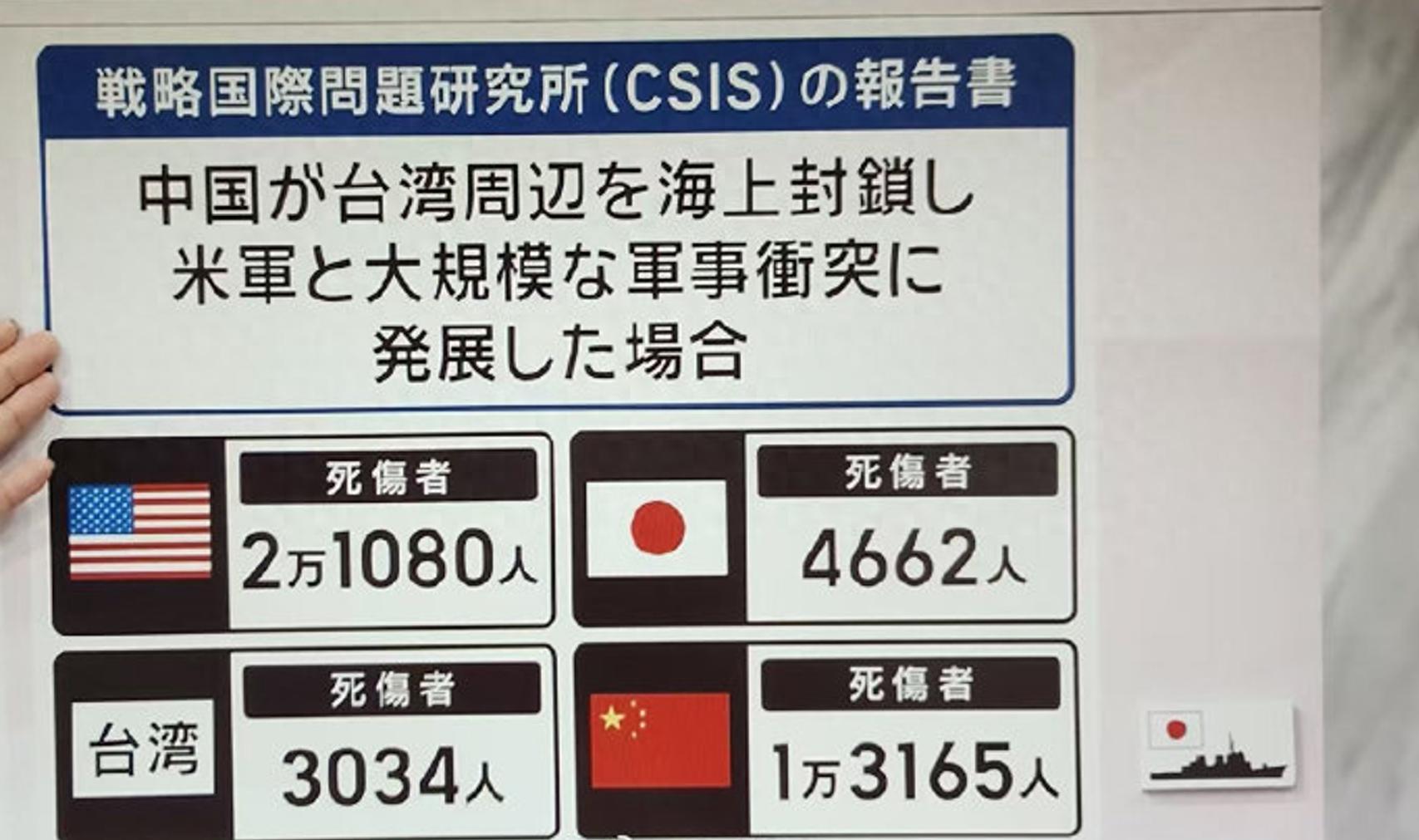 如今看来,不愿意面对现实的不仅仅是加拉格尔。日本右翼分子同样希望看到中美恶斗、美国惨胜的场景。根据日方发布的数据,推演结果是美国损失21080人,中国大陆损失13165人,中国台湾损失3034人,日本损失4662人。