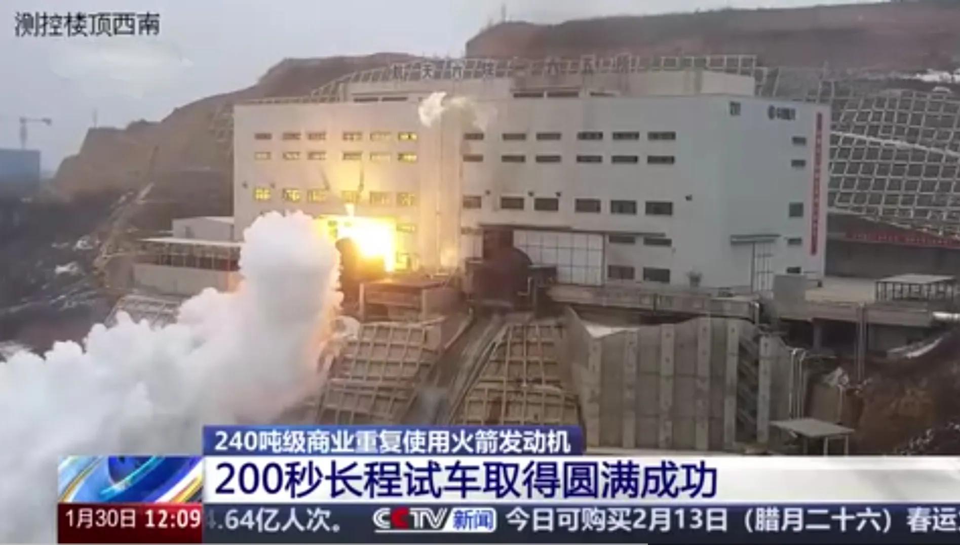 消息来源:央视新闻1月30日报道《240吨级商业重复使用火箭发动机 200秒长程试车取得圆满成功》网址