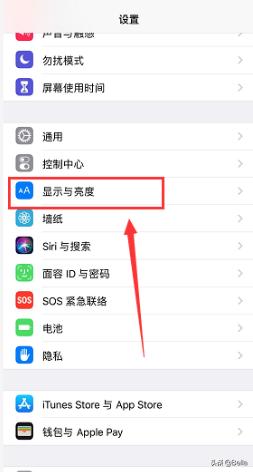 2、在设置界面点击显示与亮度选项卡