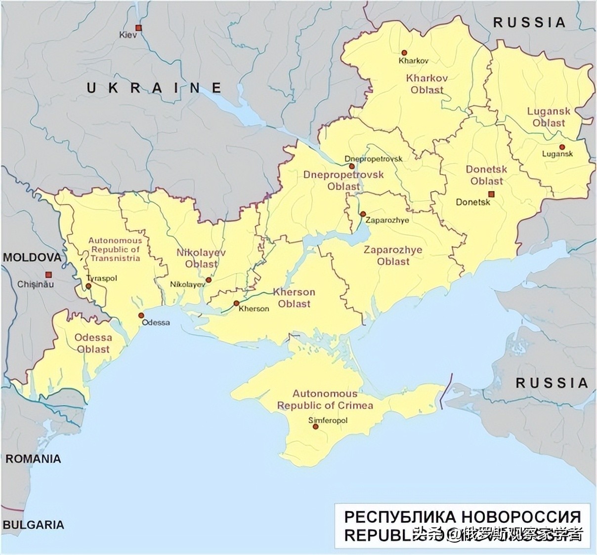 不只是守住已控制的领土(克里米亚、顿涅茨克、卢甘斯克、赫尔松、扎波罗热),而是对周边地区提出诉求,包括哈尔科夫、第聂伯罗彼得罗夫斯克、敖德萨、尼古拉耶夫—— 这些地区居住大量俄语人口,与俄罗斯有历史联系。