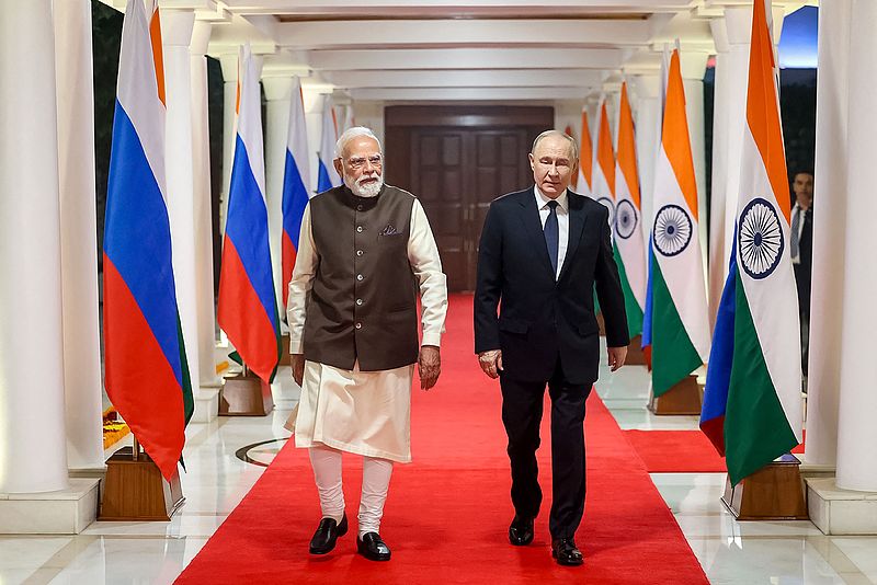 就在普京上次访印后的短短四年里,印度的外交处境已然大相径庭。曾八面玲珑的莫迪政府,今年以来压力骤增:一头是与美欧不断加剧的摩擦,另一头则是与俄罗斯难以割舍的能源与防务合作。