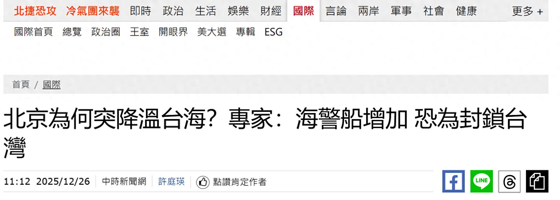 台媒“中时新闻网”12月26日报道称,近几个月来,解放军的空中行动明显减少,也没有再举行大型演习。