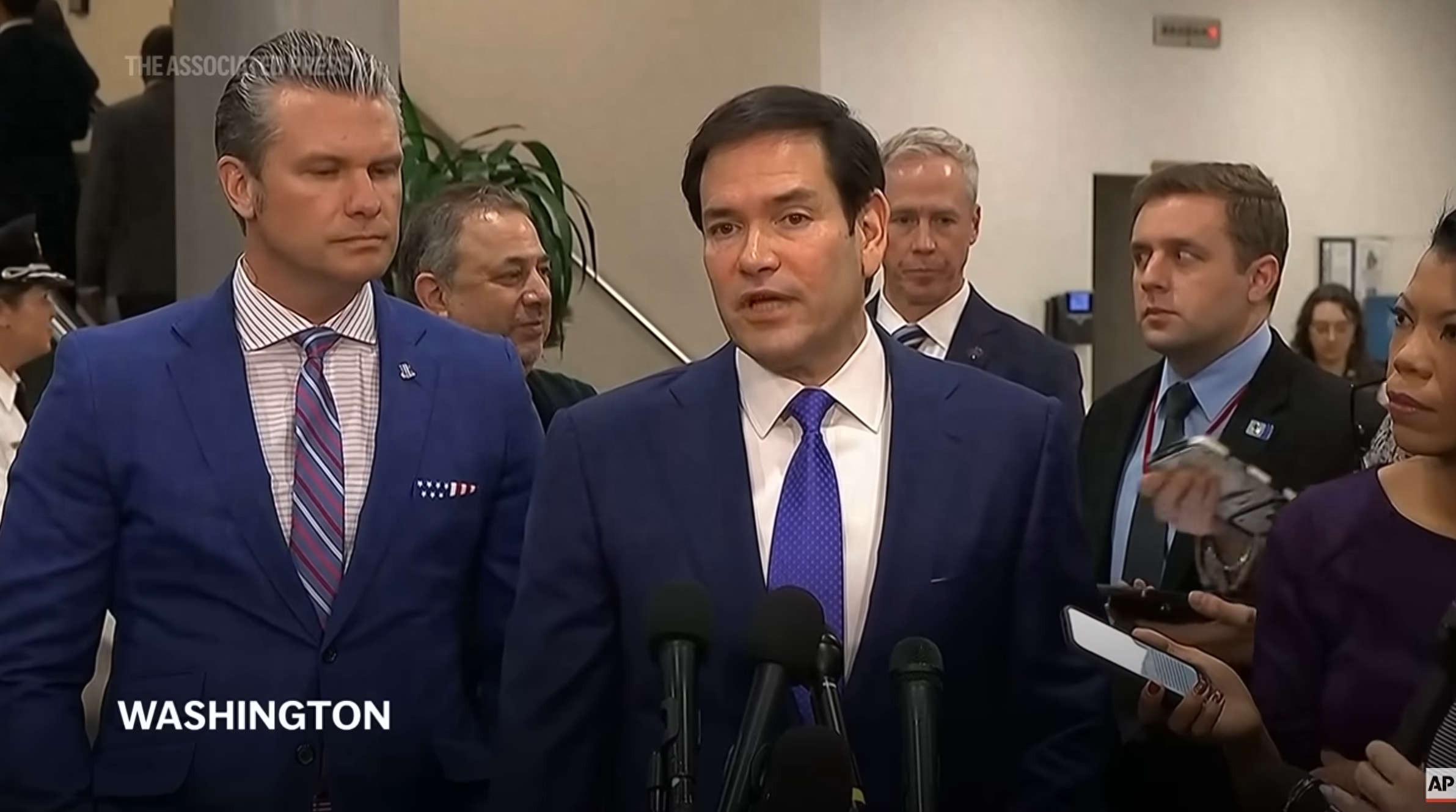 当地时间1月7日,鲁比奥在国会会议后接受采访。美联社