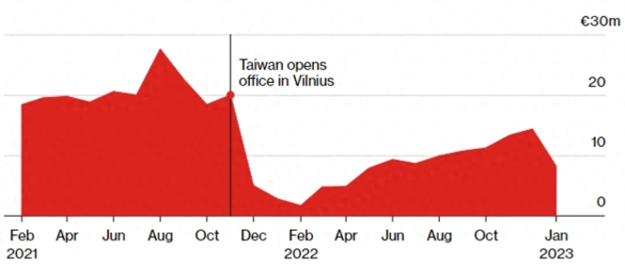 中方随即不断升级反制措施,将与立陶宛双边外交关系降为代办级,“驱逐”立陶宛驻华大使,并召回驻立大使,中立关系自此陷入冰点。