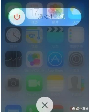 第一步,在iPhone主屏幕中,打开任意一款App,然后按住开关键几秒钟,直至屏幕出现“滑动关机”的指示。