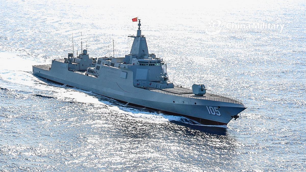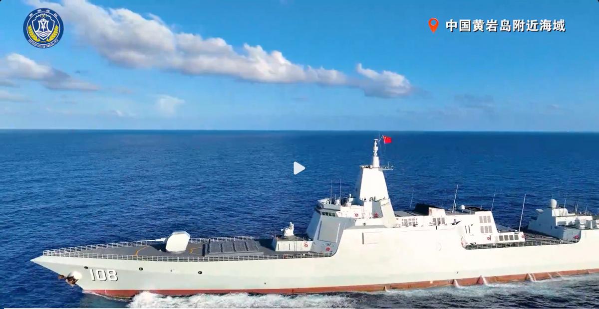 055型咸阳舰在护卫、补给舰艇的支援下,也抵达黄岩岛附近海域。