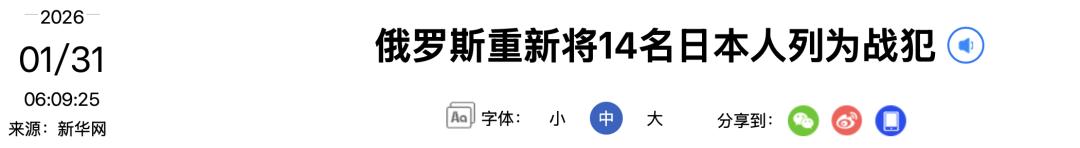 根据俄外交部网站发布的通报,扎哈罗娃当天在例行记者会上说,2025年9月至11月,俄联邦总检察院撤销上世纪90年代对14名日本公民作出的“平反”决定。这些人在第二次世界大战期间乃至1945年日本投降后,参与针对苏联的破坏和间谍活动。俄方相关机构复核后,认定这些人不符合“平反”条件,其罪行已被证实。