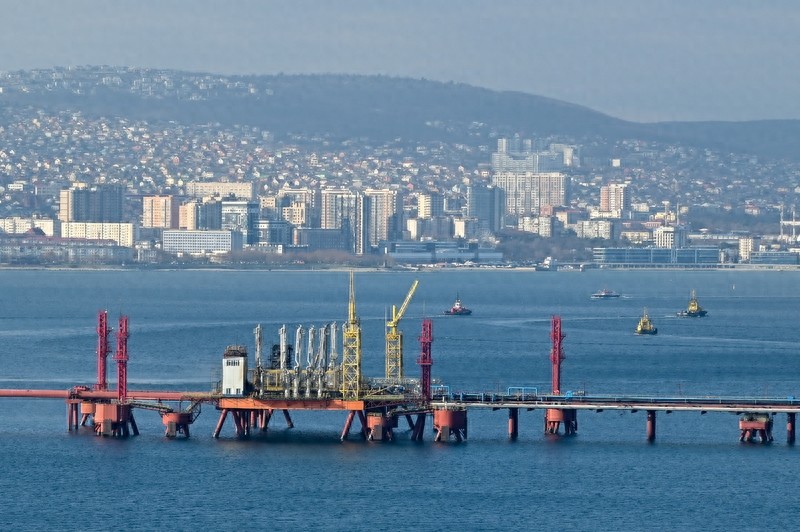 2025年12月23日,俄罗斯新罗西斯克,黑海沿岸新罗西斯克商业海港的原油装载码头 IC Photo