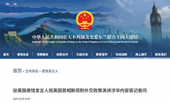 中国驻英国大使馆网站12月2日消息,驻英国使馆发言人就英国首相斯塔默外交政策演讲涉华内容答记者问。全文如下。