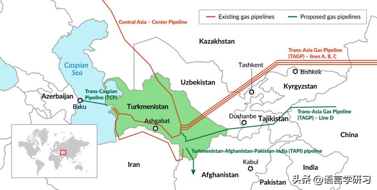 旨在输送约 330 亿立方米土库曼斯坦天然气的土库曼斯坦-阿富汗-巴基斯坦-印度(TAPI)天然气管道,其建设进度与 30 年前该构想最初提出时相比,几乎没有任何进展。土库曼斯坦已建成从土库曼斯坦气田到阿富汗边境的管道段。但 TAPI 在阿富汗境内的管道段进展缓慢,目前仅延伸至赫拉特市约 25 公里。