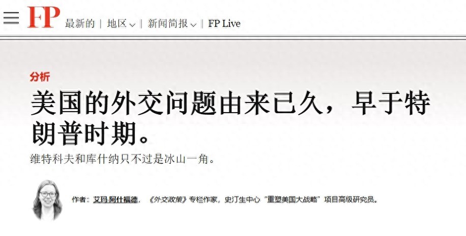 美国《外交政策》杂志进一步指出,总统亲信而非职业外交官主导重要谈判,已成为美国外交的顽疾,这反映出历届政府对外交的重视程度持续下滑。